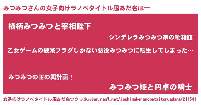 | 男性向けラノベタイトル風あだ名 | 『魔弾の王とみつみつ』 |