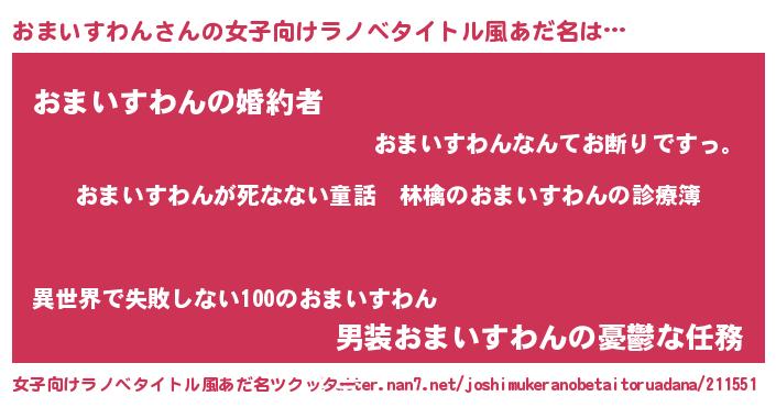 | 胡散臭い通販商品みたいなあだ名 | 『ハリウッド女優が絶賛した100年もののヴィンテージワイン…その名も「おまいすわん」』 |