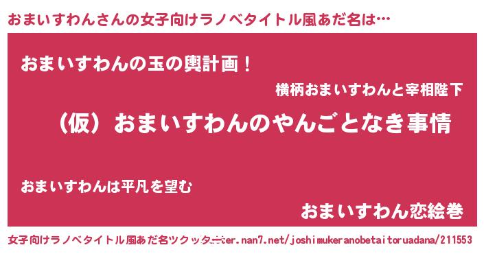 | 胡散臭い通販商品みたいなあだ名 | 『必ず成功する霊験あらたかなお札…その名も「おまいすわん」』 |