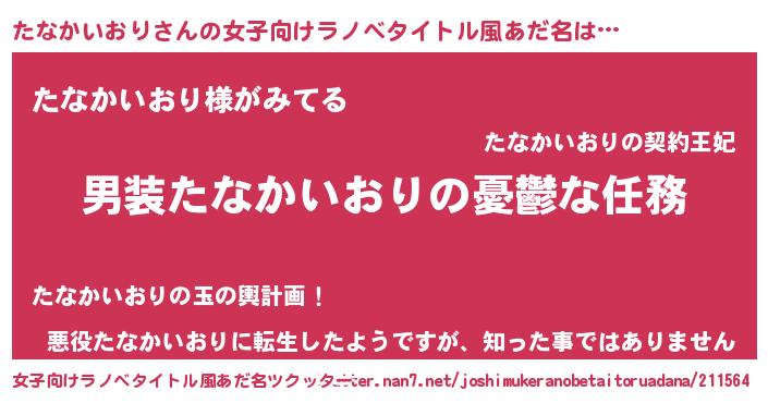 | 男性向けラノベタイトル風あだ名 | 『うちのたなかいおりが世界を掌握している!』 |