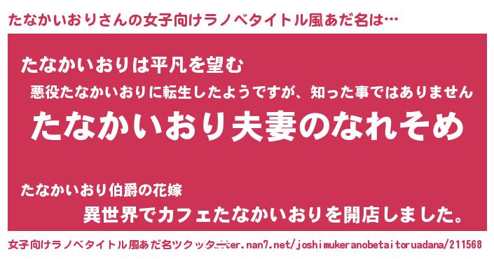 | 胡散臭い通販商品みたいなあだ名 | 『100人中100人が認めたマグネット磁石…その名も「たなかいおり」』 |