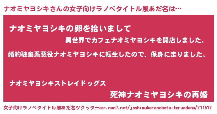 | 男性向けラノベタイトル風あだ名 | 『ナオミヤヨシキスレイヤー』 |