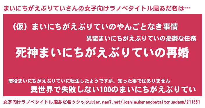 | 伝説のあだ名 | 『救世主となる占い師まいにちがえぶりてい』 |