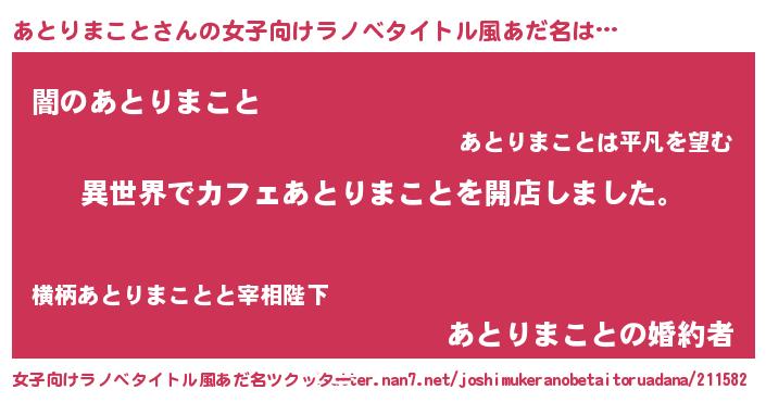 | 男性向けラノベタイトル風あだ名 | 『誰もが恐れるあのあとりまことが、ぼくの専属メイドになるようです。』 |