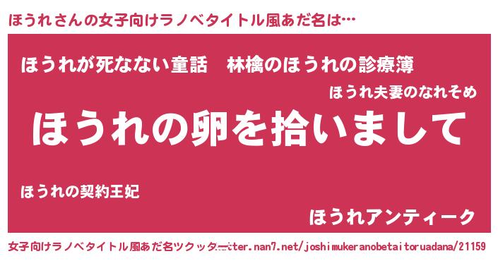 | 男性向けラノベタイトル風あだ名 | 『ダンジョンにほうれを求めるのは間違っているだろうか』 |
