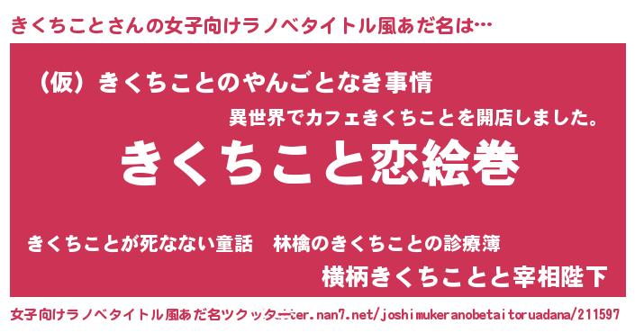 | 男性向けラノベタイトル風あだ名 | 『ノーゲーム・ノーキクチコト』 |