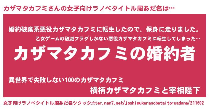| ファンタジー風あだ名 | 『エターナルカザマタカフミー』 |