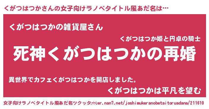 | 男性向けラノベタイトル風あだ名 | 『ノーゲーム・ノークガツハツカ』 |