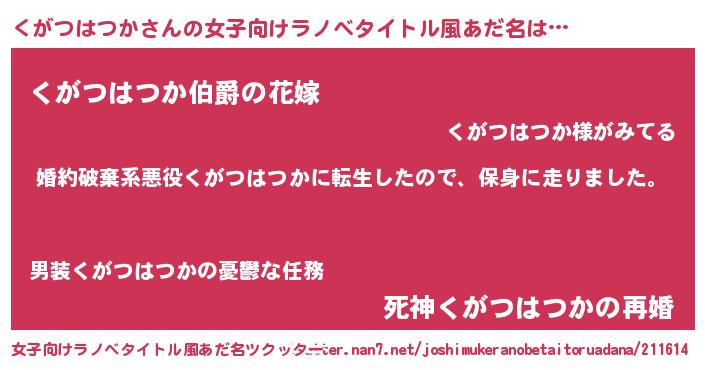 | 男性向けラノベタイトル風あだ名 | 『クガツハツカスレイヤー』 |