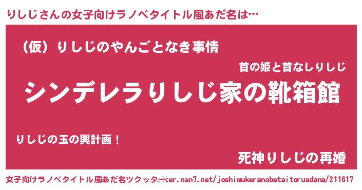 | 胡散臭い通販商品みたいなあだ名 | 『必ず成功するブレスレット…その名も「りしじ」』 |