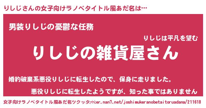 | 男性向けラノベタイトル風あだ名 | 『やはりりしじの青春ラブコメはまちがっている 』 |