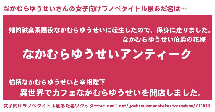 | 肩書あだ名 | 『なかむらゆうせい総統』 |