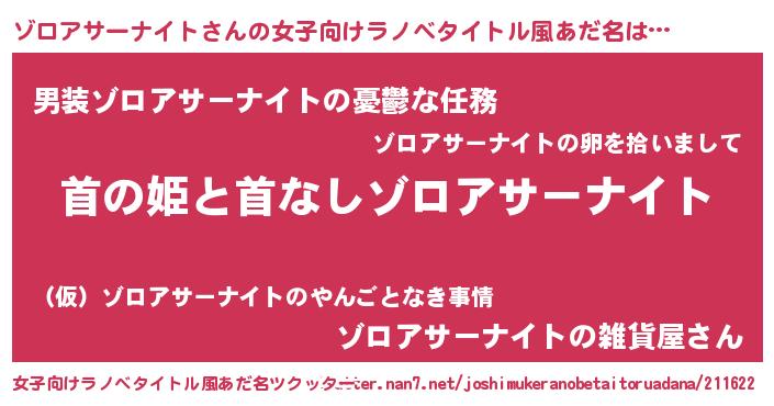 | 男性向けラノベタイトル風あだ名 | 『はたらくゾロアサーナイトさま!』 |