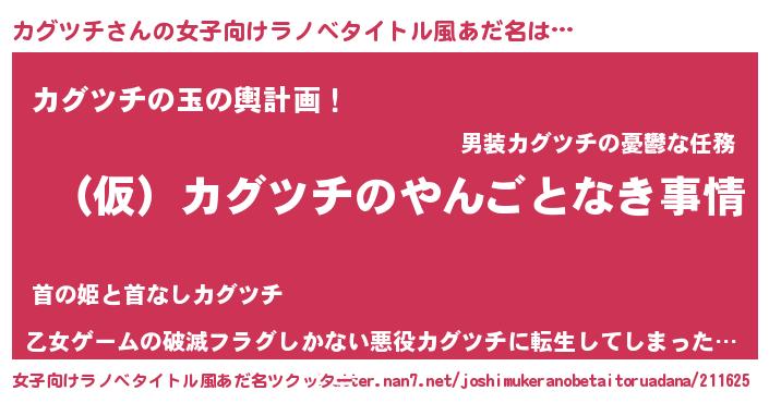 | ヒーロー風カッコイイあだ名 | 『スーパーカグツチ』『仮面カグダー』 |