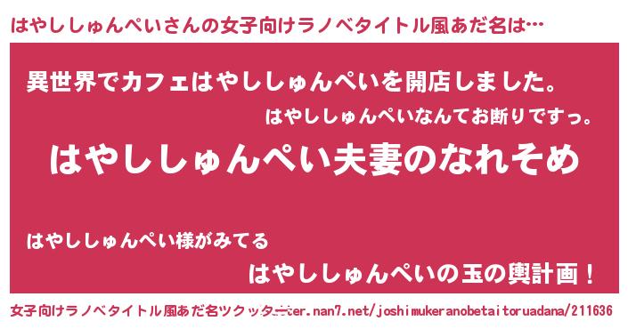 | 胡散臭い通販商品みたいなあだ名 | 『100人中100人が認めたマグネット磁石…その名も「はやししゅんぺい」』 |