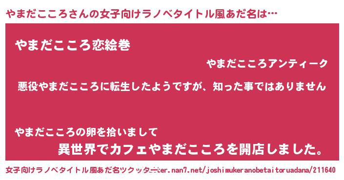 | 意味不明あだ名 | 『住所不定無職やまだこころ(85歳)』 |