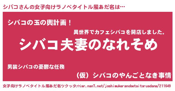 | 男性向けラノベタイトル風あだ名 | 『おまえをオタクにしてやるから、俺をシバコにしてくれ! 』 |