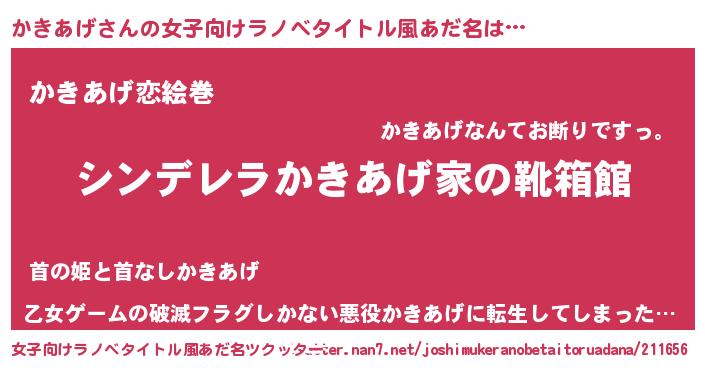 | 男性向けラノベタイトル風あだ名 | 『緋弾のカキアゲ』『魔弾の王とかきあげ』 |