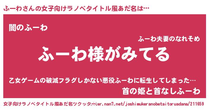 | 意味不明あだ名 | 『とにかく怪しいふーわ』『自称ふーわ』 |