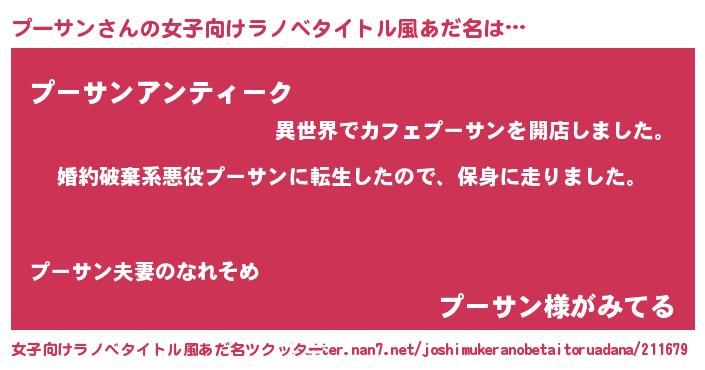 | 胡散臭い通販商品みたいなあだ名 | 『テレビで話題のアガリクス…その名も「プーサン」』 |