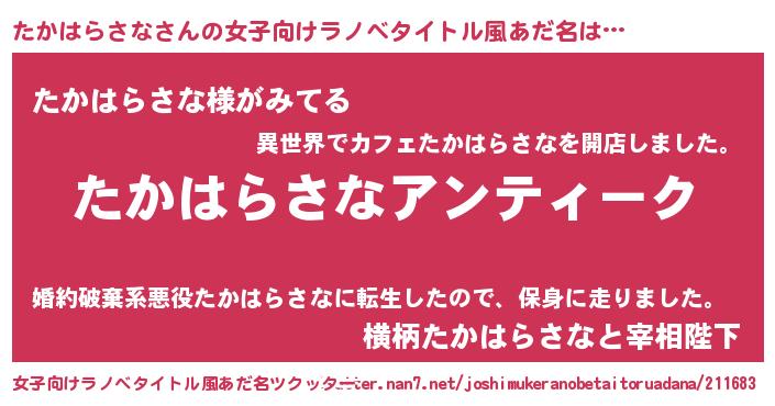 | 意味不明あだ名 | 『自称たかはらさな』 |