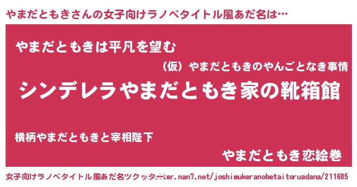 | 男性向けラノベタイトル風あだ名 | 『緋弾のヤマダトモキ』 |