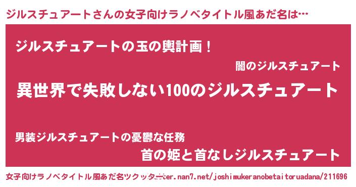 | 男性向けラノベタイトル風あだ名 | 『ジルスチュアートという概念が存在しない退屈な世界 』 |