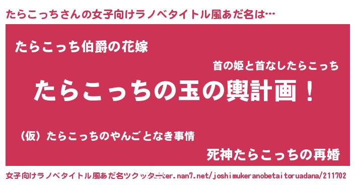 | 胡散臭い通販商品みたいなあだ名 | 『運命の人と巡り会える高級そうな皿…その名も「たらこっち」』 |