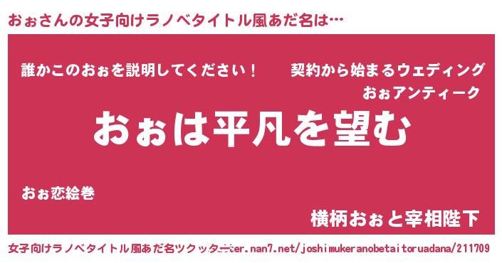 | 男性向けラノベタイトル風あだ名 | 『ダンジョンにおぉを求めるのは間違っているだろうか』 |