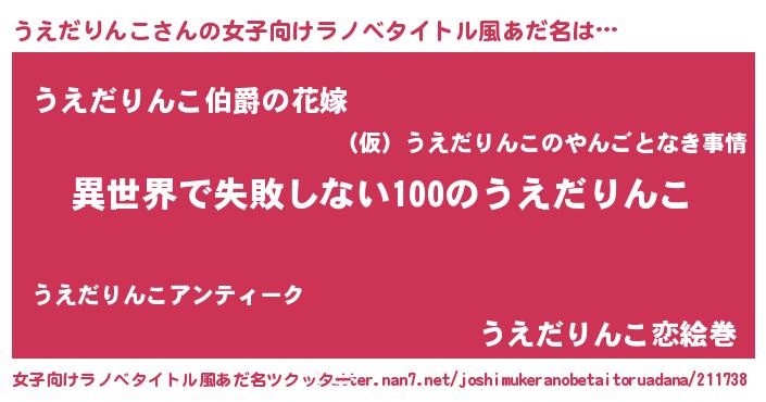 | 男性向けラノベタイトル風あだ名 | 『うえだりんこという概念が存在しない退屈な世界 』 |