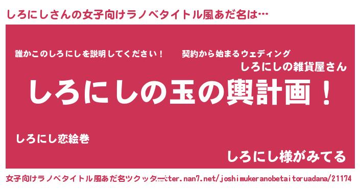 | 胡散臭い通販商品みたいなあだ名 | 『億万長者になれる霊験あらたかなお札…その名も「しろにし」』 |