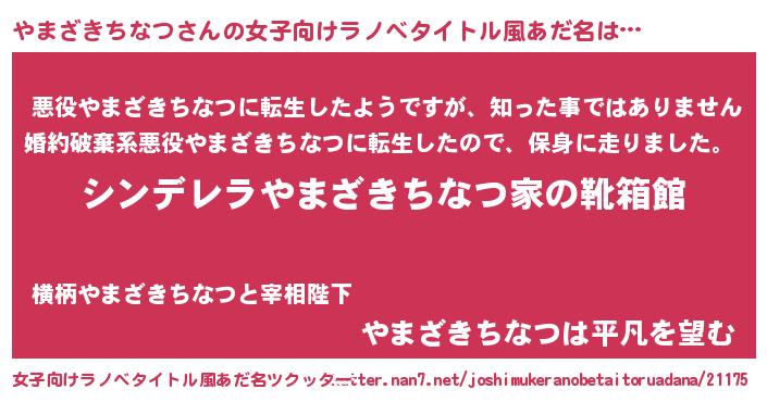 | 意味不明あだ名 | 『住所不定無職やまざきちなつ(14歳)』 |