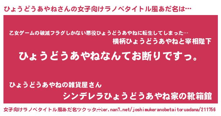 | 胡散臭い通販商品みたいなあだ名 | 『ガンによく効く冬虫夏草…その名も「ひょうどうあやね」』 |