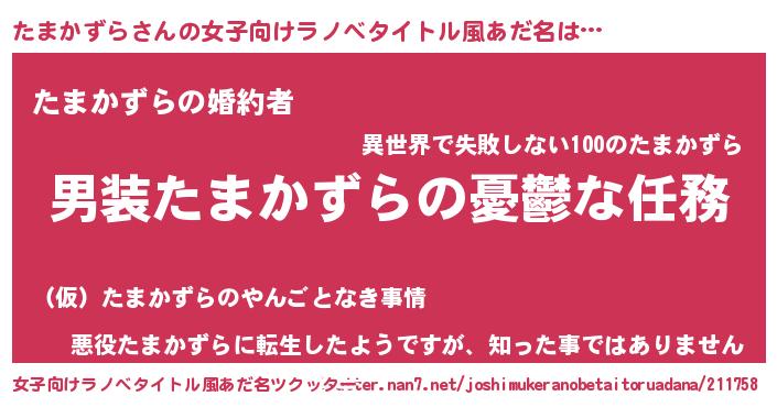 | ヘコむあだ名 | 『酢こんぶ』『たまかずら(爆)』 |