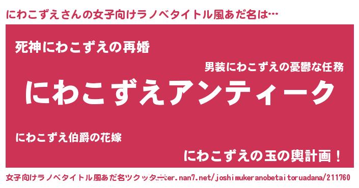 | 胡散臭い通販商品みたいなあだ名 | 『テレビで話題のアガリクス…その名も「にわこずえ」』 |
