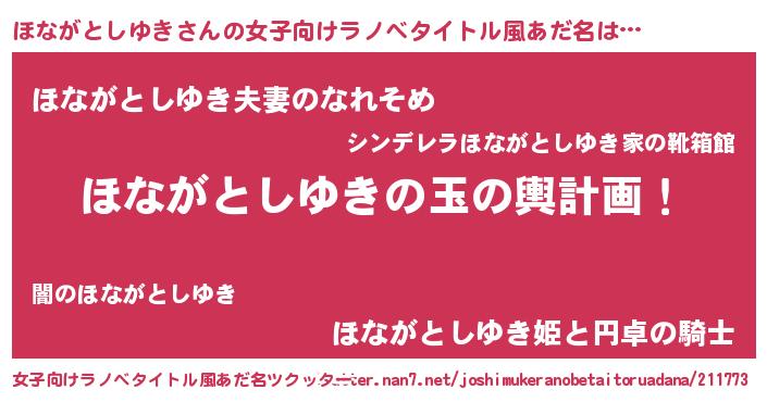 | 胡散臭い通販商品みたいなあだ名 | 『お金では代えられない隕石のかけら…その名も「ほながとしゆき」』 |