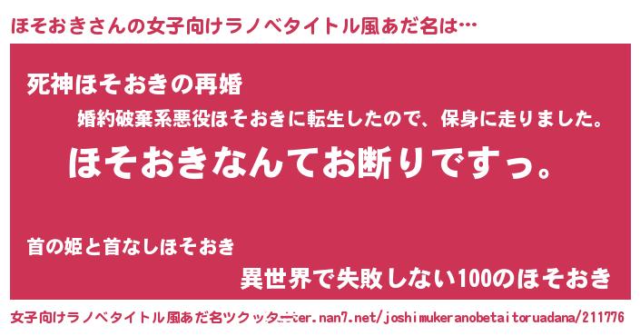 | ヘコむあだ名 | 『ほそおき(爆)』『酢こんぶ』 |