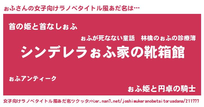 | 男性向けラノベタイトル風あだ名 | 『緋弾のォフ』『はたらくぉふさま!』 |