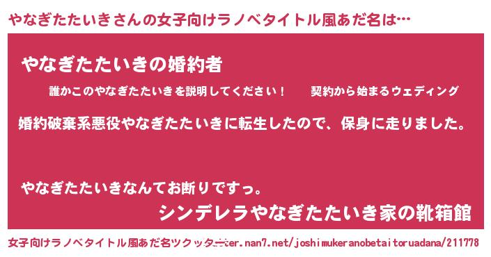 | 男性向けラノベタイトル風あだ名 | 『転生したらやなぎたたいきだった件』 |