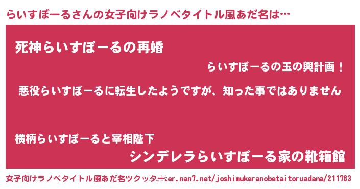 | 男性向けラノベタイトル風あだ名 | 『この素晴らしい世界にらいすぼーるを!』 |