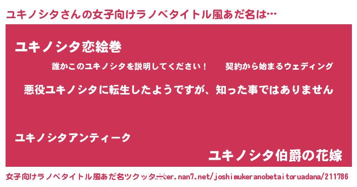 | 男性向けラノベタイトル風あだ名 | 『この素晴らしい世界にユキノシタを!』 |