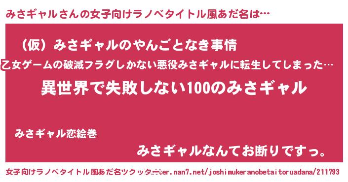| ヘコむあだ名 | 『みさギャル(小並感)』『みさにー』 |
