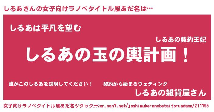 | 男性向けラノベタイトル風あだ名 | 『転生したらしるあだった件』 |