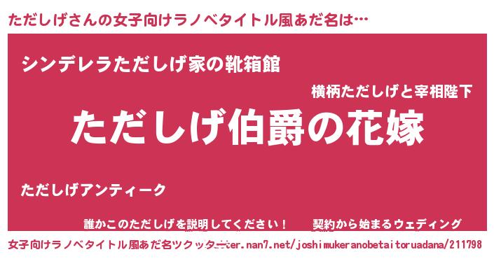 | 男性向けラノベタイトル風あだ名 | 『うちの娘の為ならば、俺はもしかしたらただしげも倒せるかもしれない。』 |