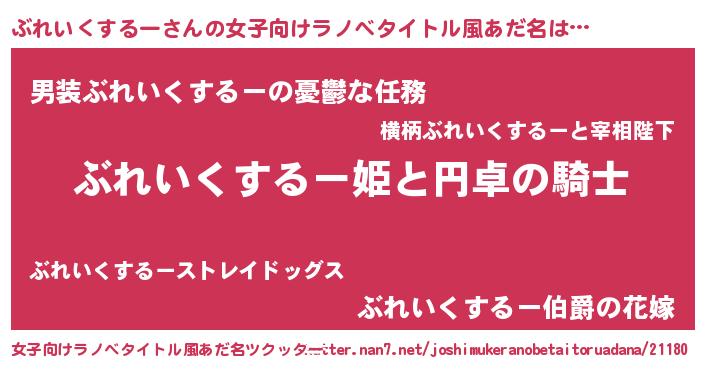 | 胡散臭い通販商品みたいなあだ名 | 『モテモテ間違いなし霊験あらたかなお札…その名も「ぶれいくするー」』 |