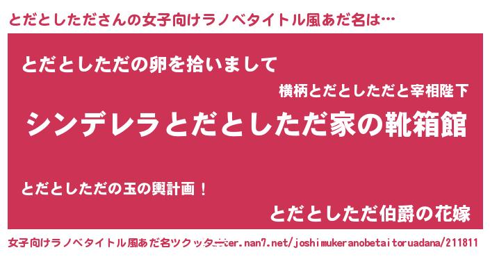 | 胡散臭い通販商品みたいなあだ名 | 『信頼と実績のネックレス…その名も「とだとしただ」』 |