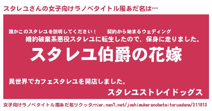 | 男性向けラノベタイトル風あだ名 | 『やはりスタレユの青春ラブコメはまちがっている 』 |