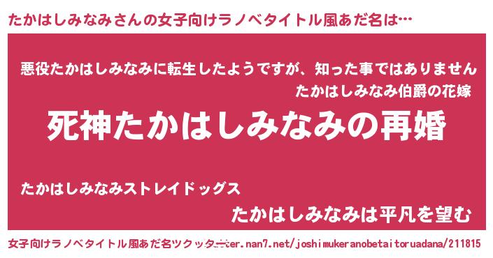 | 男性向けラノベタイトル風あだ名 | 『ノーゲーム・ノータカハシミナミ』 |