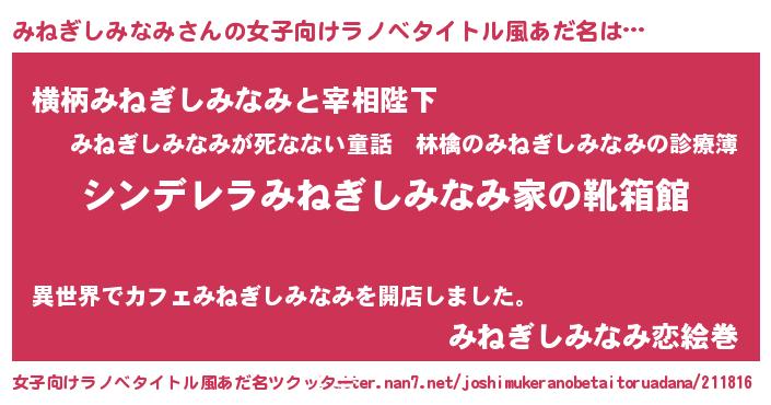 | 胡散臭い通販商品みたいなあだ名 | 『100人中100人が認めたマグネット磁石…その名も「みねぎしみなみ」』 |