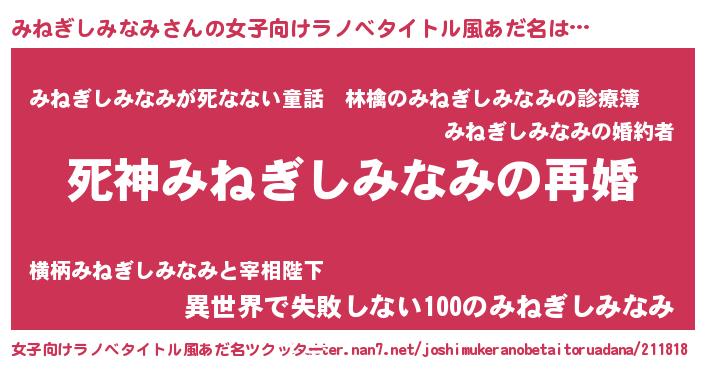 | 胡散臭い通販商品みたいなあだ名 | 『モンドセレクションを受賞したイリジウム磁石…その名も「みねぎしみなみ」』 |